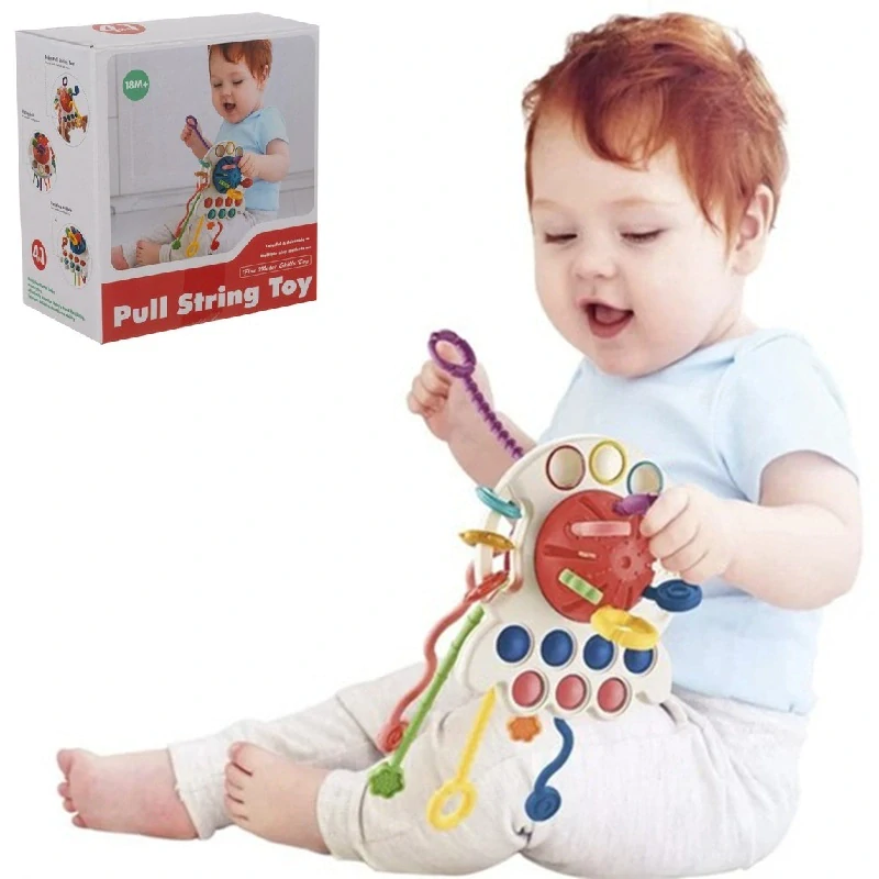 ✔ 4 interaktivní funkce – texturované provázky, kroužky, chrastítko, posuvné knoflíky.