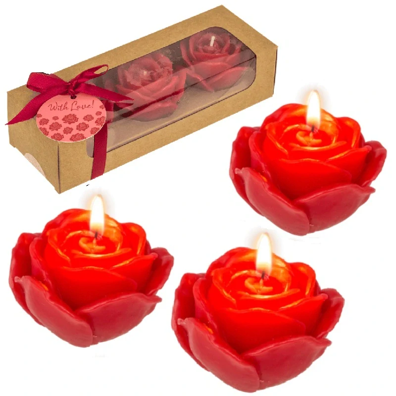 Svíčky ve tvaru červené růže, sada 3 ks – romantický dárek pro ženu